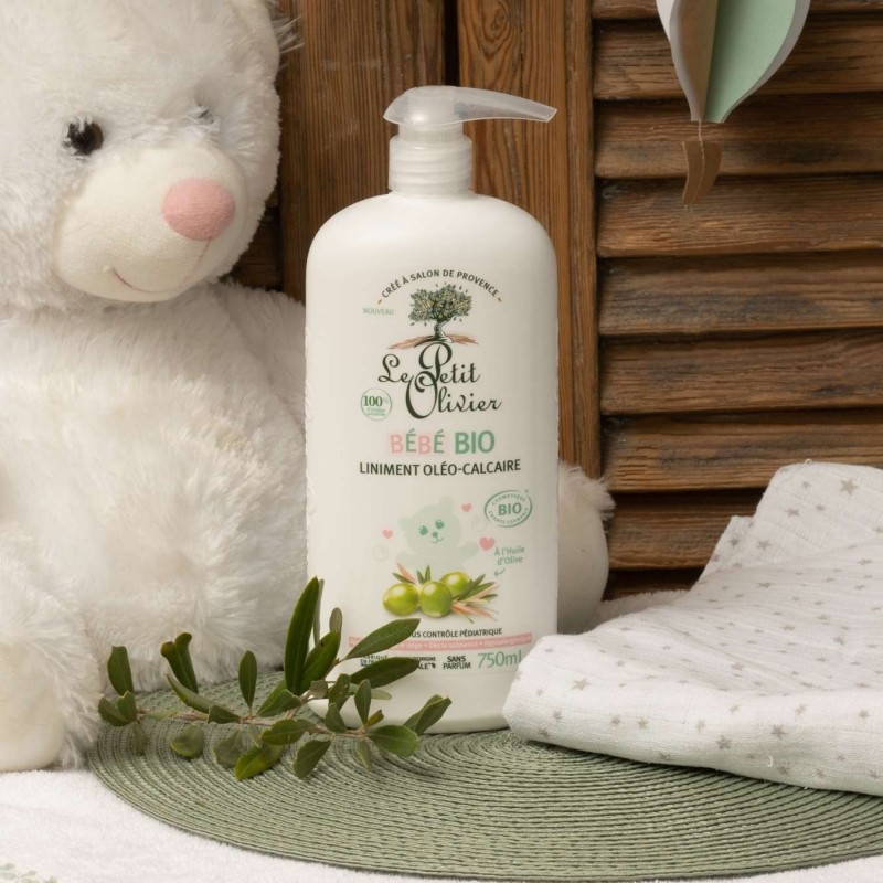 Le Liniment Oléo Calcaire Bébé Bio Le Petit Olivier, certifié BIO par Ecocert, enrichi en Huile d’Olive, nettoie en douceur et de manière efficace les fesses de votre bébé, tout en laissant un film protecteur sur sa peau. La formule hypoallergénique (2) et sans parfum de ce liniment respecte la peau sensible de bébé et prévient l’apparition de rougeurs et d’irritations. Testé sous contrôle pédiatrique, ce liniment peut être utilisé dès la naissance.